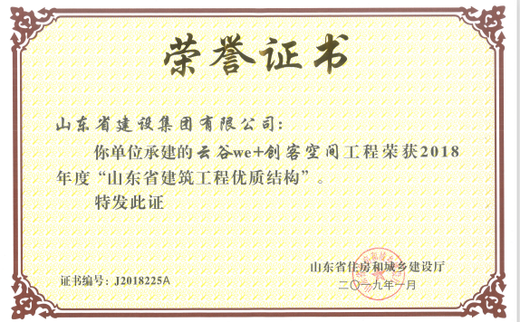 云谷we+創(chuàng)客空間工程獲2018年度山東省建筑工程優(yōu)質(zhì)結(jié)構(gòu)